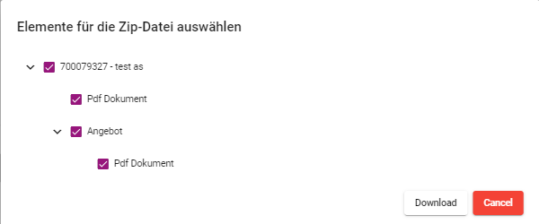 Sie können markieren, welche Dokumente Sie herunterladen möchten. Nach einem Klick auf die Schaltfläche "Download" werden alle ausgewählten Dokumente in einer einzigen ZIP-Datei heruntergeladen.