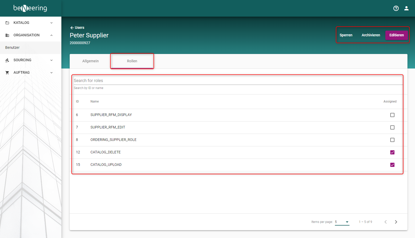 Hier können Sie dem Benutzer verschiedene Benutzerrollen zuweisen.