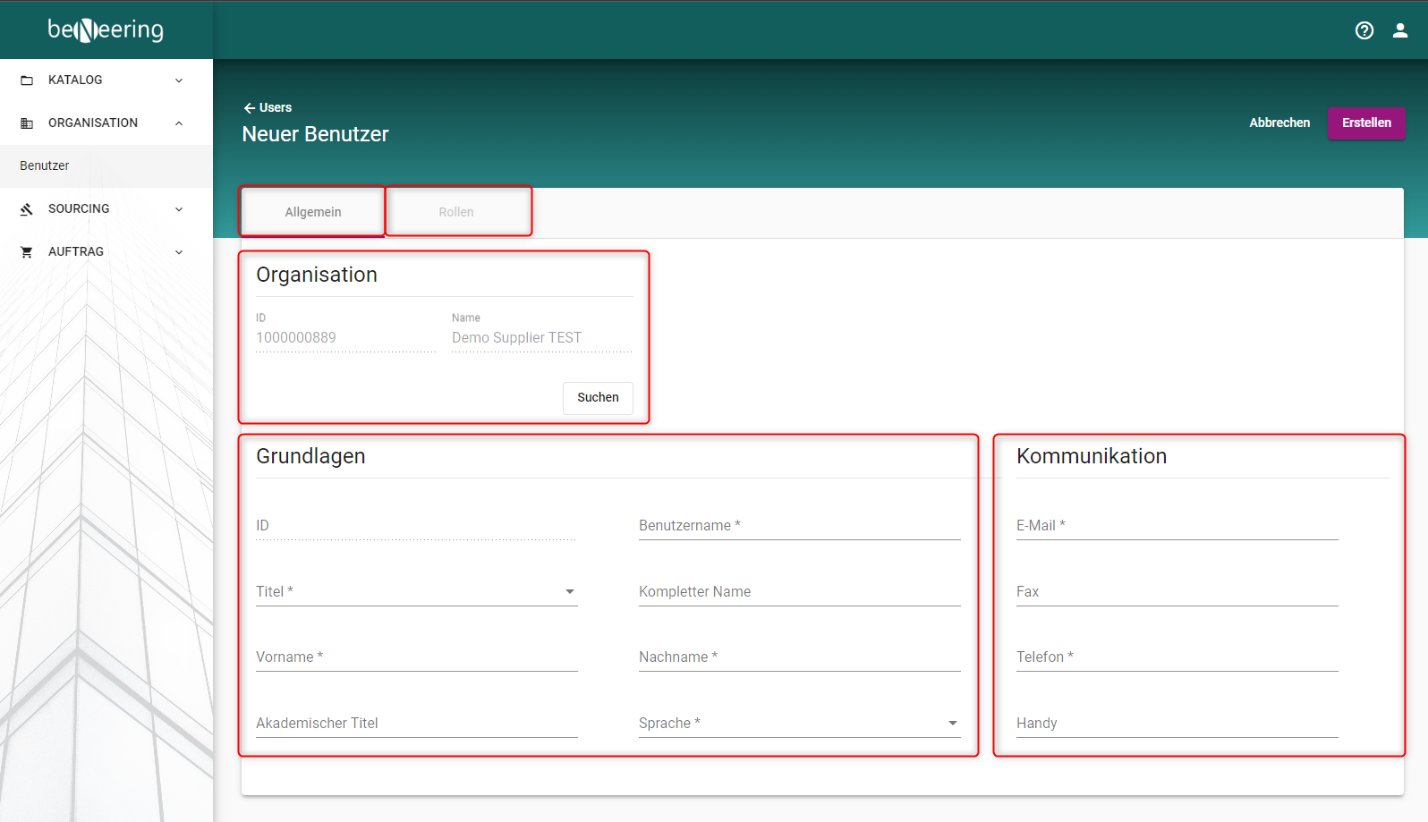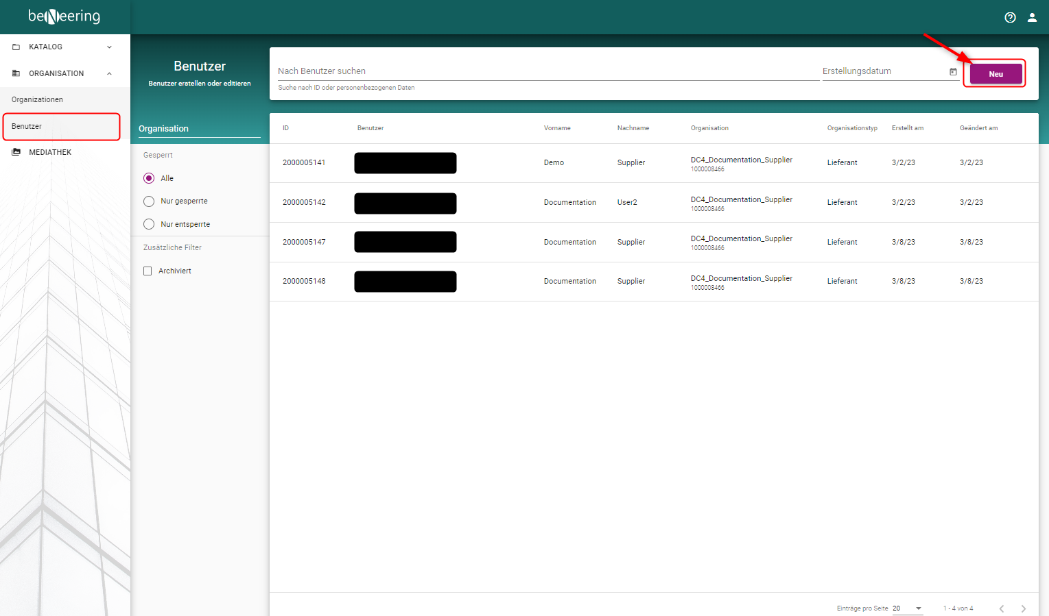Um einen neuen Benutzer anzulegen, klicken Sie bitte auf "Neuer Benutzer" in der oberen rechten Ecke.