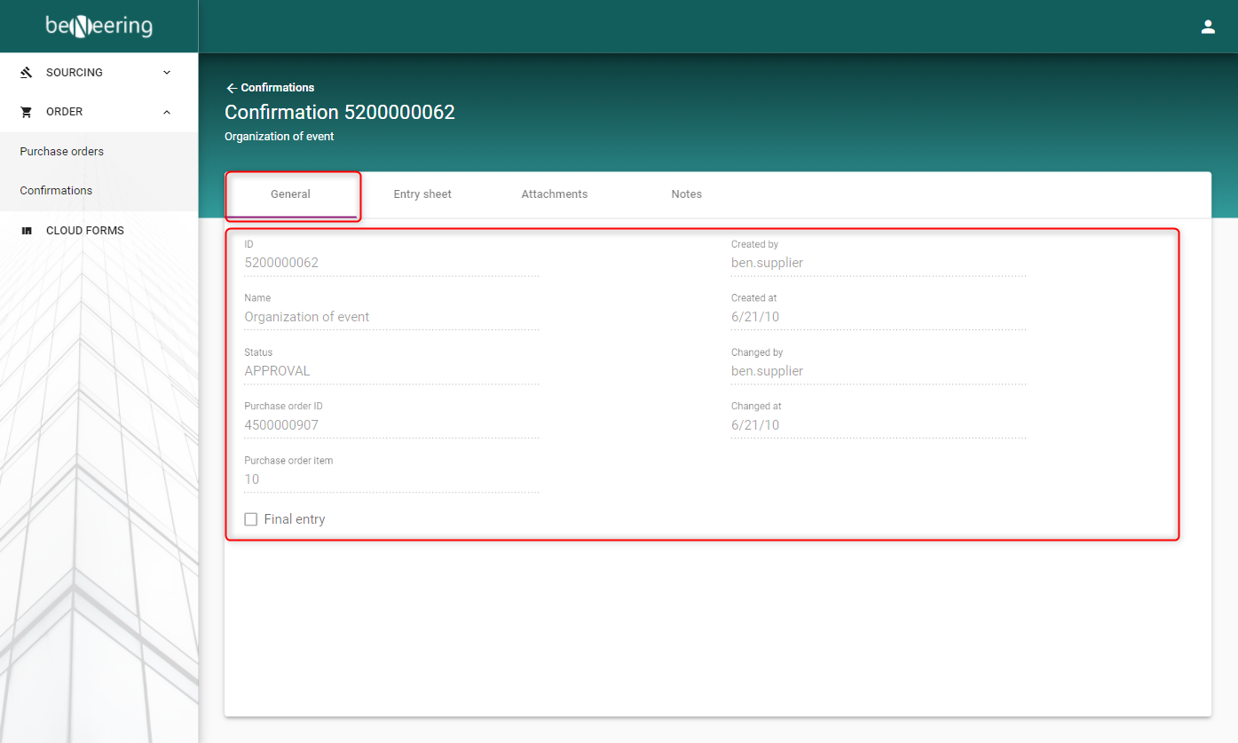 Created by | Confirmation was created by this supplier user |