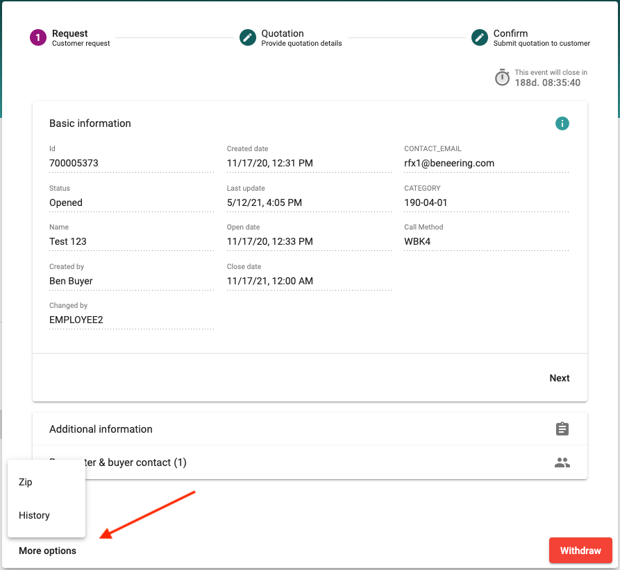 You can download the entire sourcing request in a ZIP format. When in Request Overview, click on "More options" (bottom left corner), and click on "Zip" in this menu showing up.