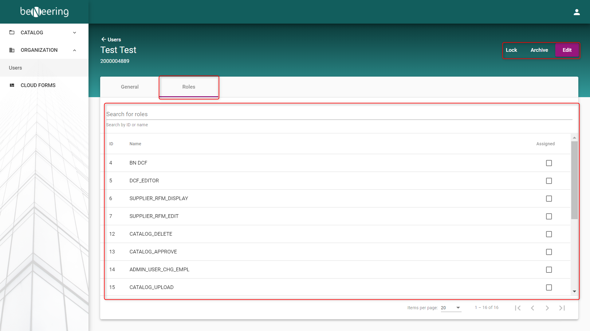 After clicking on the "Create" button in the top right corner you can navigate to the user "Roles" tab.