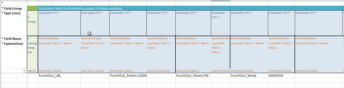 Depending on the Parameters that the Supplier-Shop is using, you are able to modify the "PunchOut_Param". As seen above the Request Parameter Name can be implemented into the Excel-File with the Format: