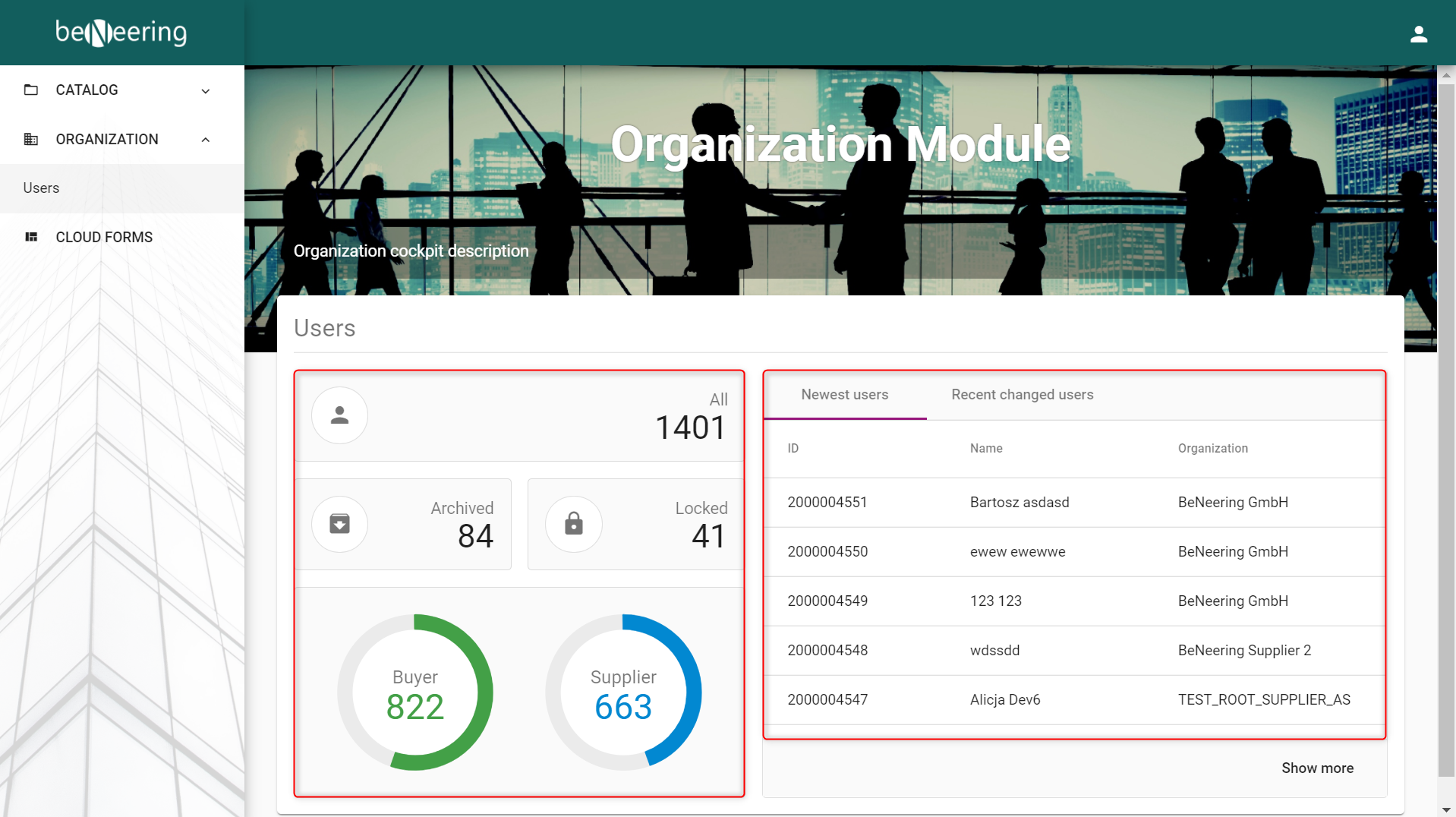 Manage your organization data like users and user roles. The dashboard will give you an overview of users who are registered in your organization.